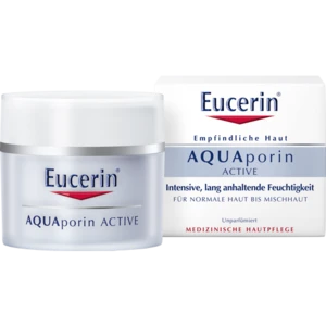 Die leichte Feuchtigkeitspflege Eucerin AQUAporin ACTIVE für normale Haut bis Mischhaut versorgt empfindliche Gesichtshaut intensiv und langanhaltend mit Feuchtigkeit.