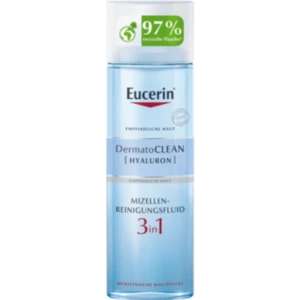 Eucerin DermatoCLEAN [HYALURON] Mizellen Reinigungsfluid 3 in 1 ist eine schnelle und bequeme Gesichtsreinigung, die für alle Hauttypen, auch für empfindliche Haut, geeignet ist – dies ist klinisch und dermatologisch erwiesen.