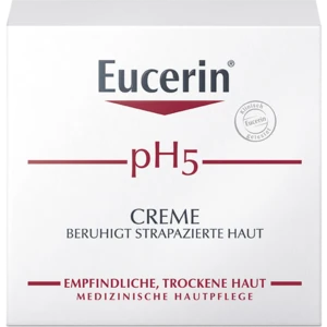 Auf Umwelteinflüsse reagiert sensible, trockene Haut oft mit Hautrötungen, Spannungsgefühl und Hautirritationen. Eine besondere Pflege ist für geschwächte Haut daher umso wichtiger. Eucerin pH5 Creme F wurde extra entwickelt, um empfindliche und extrem trockene Haut ausreichend zu pflegen.