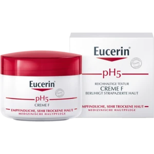 Die Eucerin pH5 Creme F profitiert von dem Eucerin pH Balance System mit dem pH5 Citratpuffer. Denn es stellt den natürlichen pH-Wert der Haut wieder her. Gleichzeitig hilft 3% Dexpanthenol die Regeneration der Haut zu stimulieren und deren Widerstandskraft zu bewahren. Eucerin pH5 Creme F enthält einen dezenten Duft und versorgt die Haut wirksam mit Feuchtigkeit. Geeignet für Kinder (ab drei Jahren) und Erwachsene.