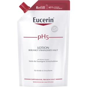 Eucerin pH5 Lotion ist eine sanfte, aber wirksame Körperpflege, die speziell entwickelt wurde, um empfindliche, trockene Körperhaut widerstandsfähiger und weniger empfindlich zu machen. Das einzigartige Eucerin mit dem stellt den natürlichen pH-Wert der Haut wieder her. Gleichzeitig hilft 5% die Regeneration der Haut zu stimulieren und deren Widerstandskraft zu bewahren.