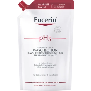 Eucerin pH5 Waschlotion ist ein seifenfreies Reinigungsprodukt, das für die tägliche Reinigung von Gesicht und Körper geeignet ist. Die Formel mit dem natürlichen pH-Wert und bewahrt nachweislich die natürliche Schutzfunktion und Widerstandskraft der Haut und reinigt sanft mit extra milden, seifenfreien Tensiden.