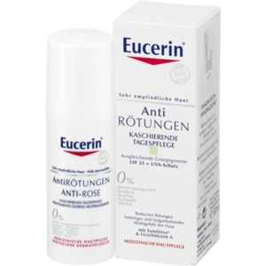 Eucerin Anti-Rötungen Kaschierende Tagespflege LSF 25 wurde speziell für sehr empfindliche Haut und zur Pflege bei Rosazea/Couperose entwickelt. Nach dem Reinigen aufgetragen beruhigt die Tagespflege Irritationen sofort und kaschiert Rötungen. Ihre innovative Formel kombiniert die Inhaltsstoffe: und