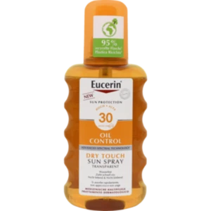 Das Eucerin Oil Control Sun Spray Transparent mit LSF 30 beruhigt und schützt empfindliche sowie zu Akne neigende Haut vor sonnenbedingten Hautschäden. Das Sonnenschutzspray kombiniert die ADVANCED SPECTRAL TECHNOLOGY mit UVA/UVB-Filter für hohen UV-Schutz und Licochalcone A zur Neutralisation freier Radikale. So schützt das Spray sowohl zuverlässig vor UV-Strahlung als vor hochenergetisch sichtbarem Licht (HEV-Licht), welche die Zellen der Haut negativ beeinflussen können. Beim Auftragen ist das Sonnenspray transparent, nicht fettend, schnelleinziehend sowie wasserfest.