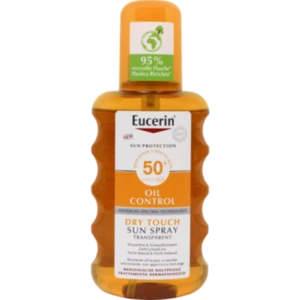 Das Eucerin Oil Control Sun Spray Transparent mit LSF 50+ beruhigt und schützt empfindliche sowie zu Akne neigende Haut vor sonnenbedingten Hautschäden. Das Sonnenschutzspray kombiniert die ADVANCED SPECTRAL TECHNOLOGY mit UVA/UVB-Filter für hohen UV-Schutz und Licochalcone A zur Neutralisation freier Radikale. So schützt das Spray sowohl zuverlässig vor UV-Strahlung als vor hochenergetisch sichtbarem Licht (HEV-Licht), welche die Zellen der Haut negativ beeinflussen können. Beim Auftragen ist das Sonnenspray transparent, nicht fettend, schnelleinziehend sowie wasserfest und schweißresistent.