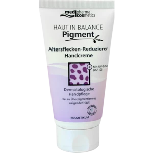 Die dermatologische Handcreme von HAUT IN BALANCE Pigment pflegt die Hände intensiv und versorgt sie langanhaltend mit Feuchtigkeit. Dunkle Hautstellen wie Alters- oder Pigmentflecken werden reduziert und deren Neuentstehung vorgebeugt.
