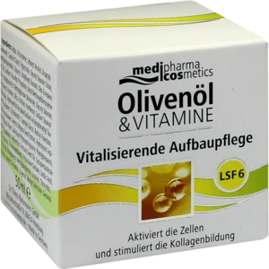 Die vitalisierende Aufbaupflege, angereichert mit kaltgepresstem Olivenöl und Vitaminen, vitalisiert, pflegt und stimuliert die Kollagenbildung.