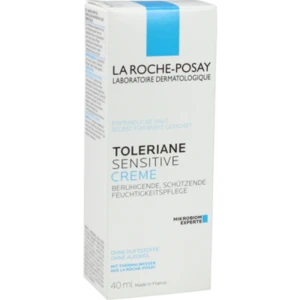 TOLERIANE Sensitive Creme für empfindliche und zu Allergien neigende Haut Die La Roche Posay Gesichtscreme ist eine Feuchtigkeitspflege, die das natürliche Mikrobiom der Haut stärkt und schützt und Rötungen, Hautirritationen sowie Spannungsgefühlen entgegenwirkt. Dank ihrer beruhigenden Inhaltsstoffe, wie Glycerin und Thermalwasser aus La Roche Posay, spendet die TOLERIANE Sensitive Creme bis zu 48 Stunden intensive Feuchtigkeit und stärkt die Hautschutzbarriere. Da die feuchtigkeitsspendende Creme auf Duftstoffe und Alkohole verzichtet, eignet sie sich bei zu Allergien neigender Haut und zarter Babyhaut.